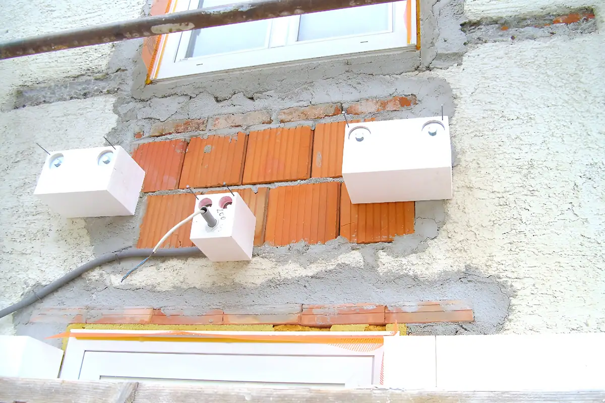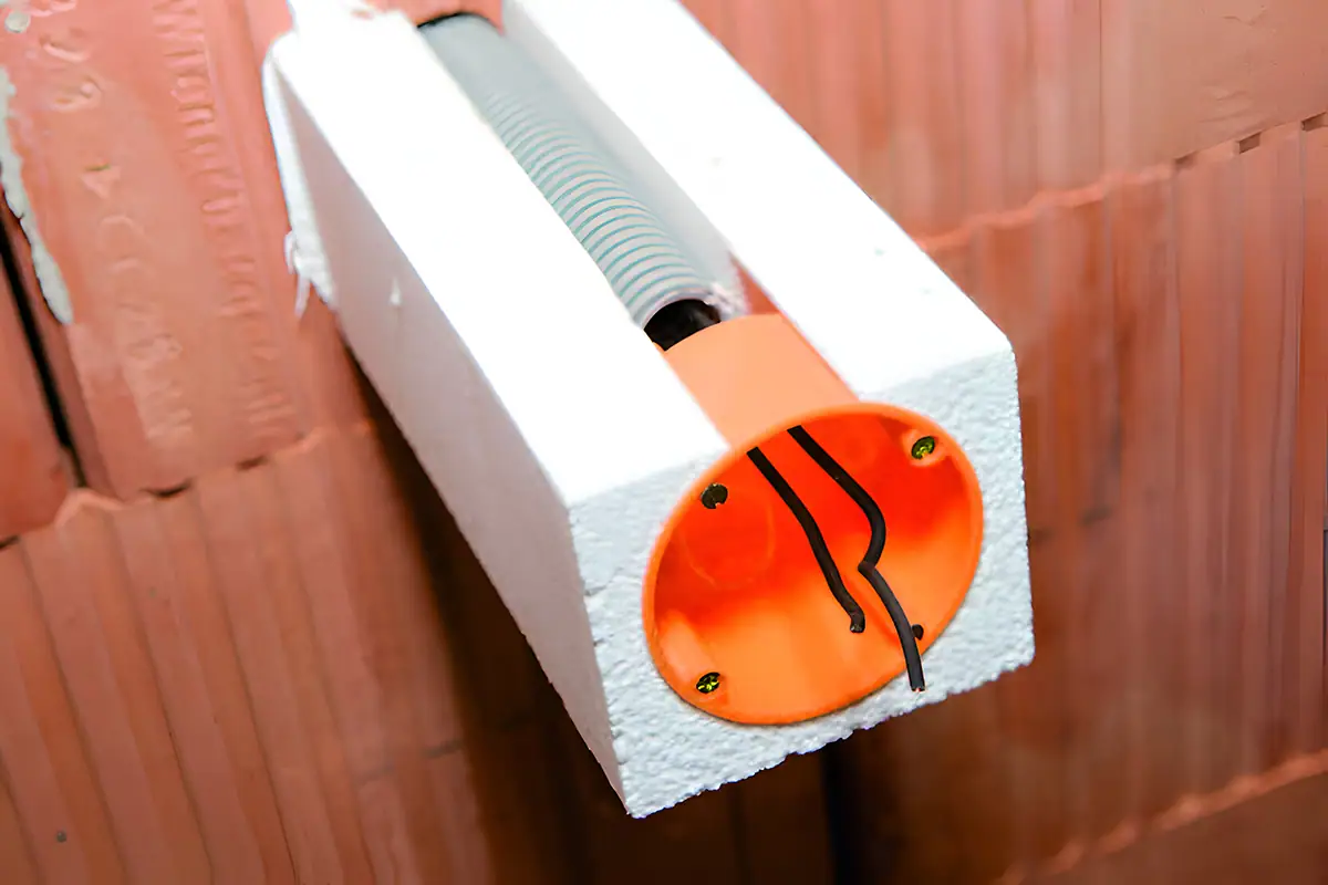 External sockets that are fixed in the ETICS are subject to particular stress: repeated tensile forces when disconnecting power cables usually cause the sockets to tear out after some time. The COMPACFOAM-The CF electrical mounting element (round or square) is firmly anchored to the masonry, while the socket itself is screwed into the CF element. This creates COMPACFOAM the perfect combination: fixed anchoring and yet a continuous thermal insulation composite system.