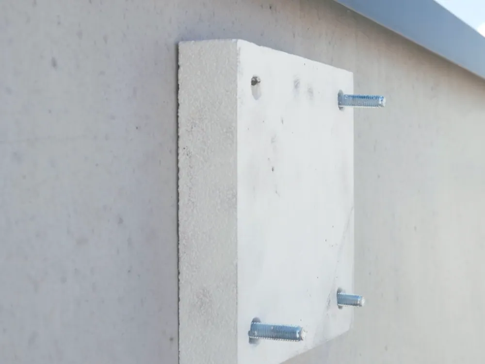 Heat loss due to local thermal bridges can be significantly reduced by CF separation layers of 10-200 mm under brackets and mounting points. The bearings can be supplied pre-assembled or cut from panels on site. Drill holes and slotted holes with milling are also possible without any problems.