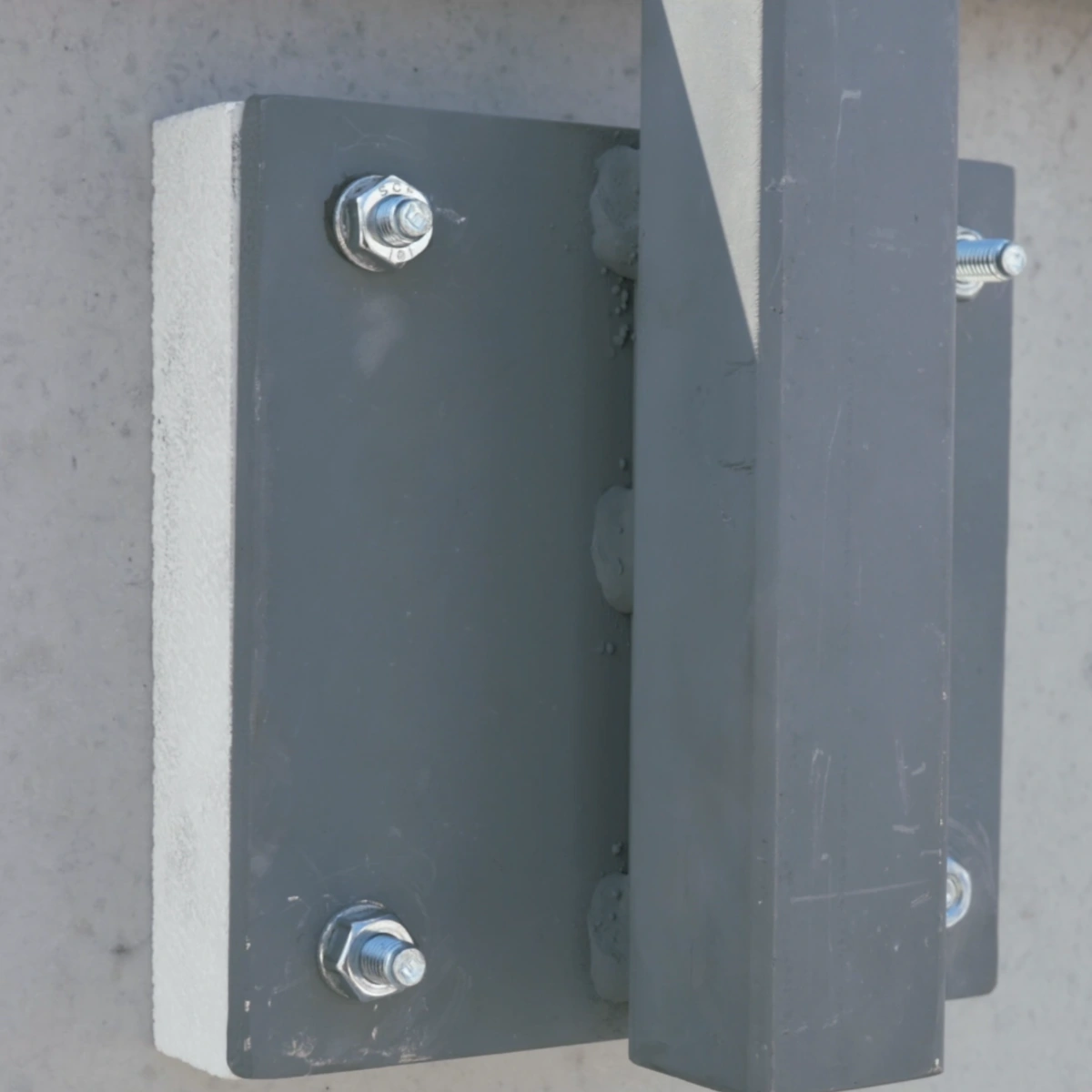 With high-pressure-resistant separating layers under brackets and mounting points, you can avoid thermal bridges even under the highest pressure loads. The bearings can be supplied pre-assembled or cut from panels on site. We manufacture the panels with drill holes and slotted holes at short notice according to your drawings and specifications.