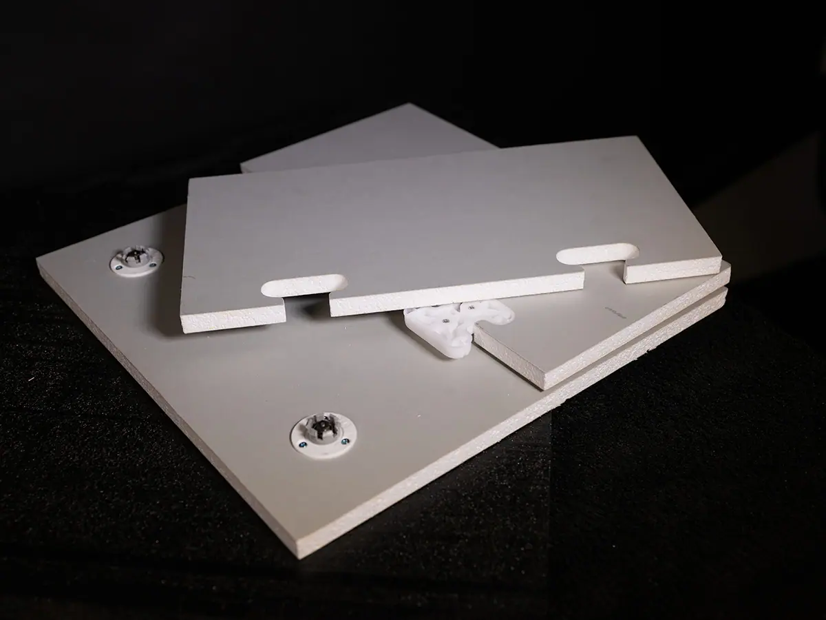 COMPACFOAM is up to 70% lighter than wood-based materials, but just as easy to process and similarly stable. Load-bearing screws can be screwed in directly, and furniture edges and milled edges can be attached without any problems. Unlike wood-based materials and many other functional and lightweight materials, the material is completely moisture-resistant and dimensionally stable. Thanks to the special manufacturing process, it does not swell or shrink – the panels do not warp, even under changing temperature and humidity conditions.
