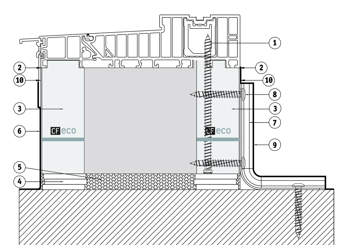 - Window frame screw 7.5mm - no pre-drilling required in the substructure profile; spacing and anchoring length according to static requirements or RAL guidelines