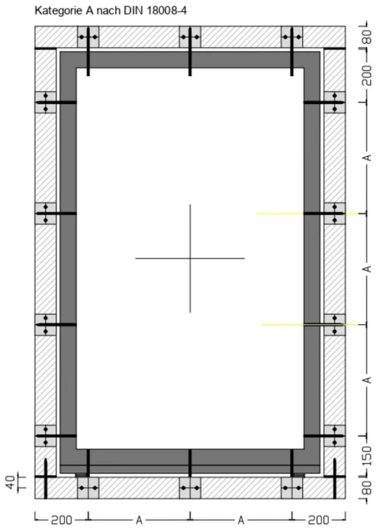A….max. screw connection distance top and side <700mm or according to static requirements.