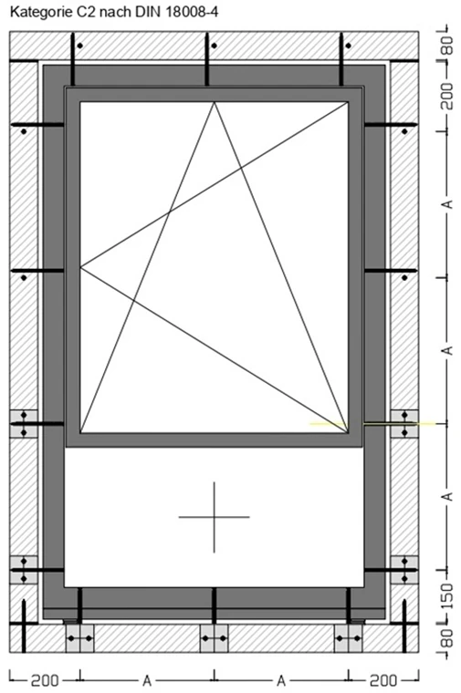 In Austria, the fixing distances for all window types are uniformly specified as 700mm. The RAL guideline (DE) specifies a maximum of 700mm for PVC windows and 800mm for timber and aluminum windows. In principle, national and other specifications must be observed!