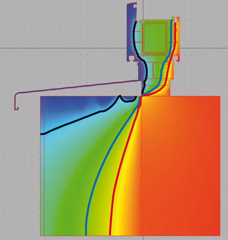 The pre-wall installation system Klima Konform improves the temperature curves between the wall system and the window. The isotherms clearly show the advantages of pre-wall installation compared to conventional installation.