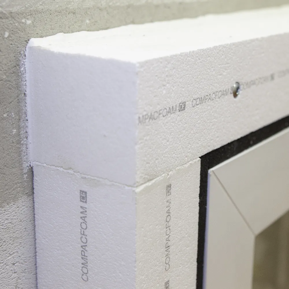 With the COMPACFOAM Klima Konform system, windows and doors can be installed in the insulation level (ETICS) without thermal bridges. This means that the windows and doors move to the outside of the thermal insulation.