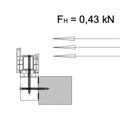 Horizontal loads in window constructions arise due to wind or impact on the glazing panes. From there, they are transferred to the frame construction. This load is transferred to the mounting frame at a point via the side screw connection.