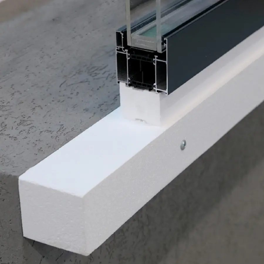 I profili standard coprono la maggior parte degli scenari di installazione. Per progetti personalizzati – bordi superiori inclinati per il drenaggio dell’acqua piovana, cunei isolanti integrati, soluzioni su misura per intradossi – COMPACFOAM li realizza su macchine CNC a 5 assi (fino a 4.700 × 600 × 300 mm in un unico pezzo) o tramite taglio a filo a 2 assi (fino a 2.350 × 500 × 500 mm). I profili sono privi di deformazioni e dimensionalmente stabili.