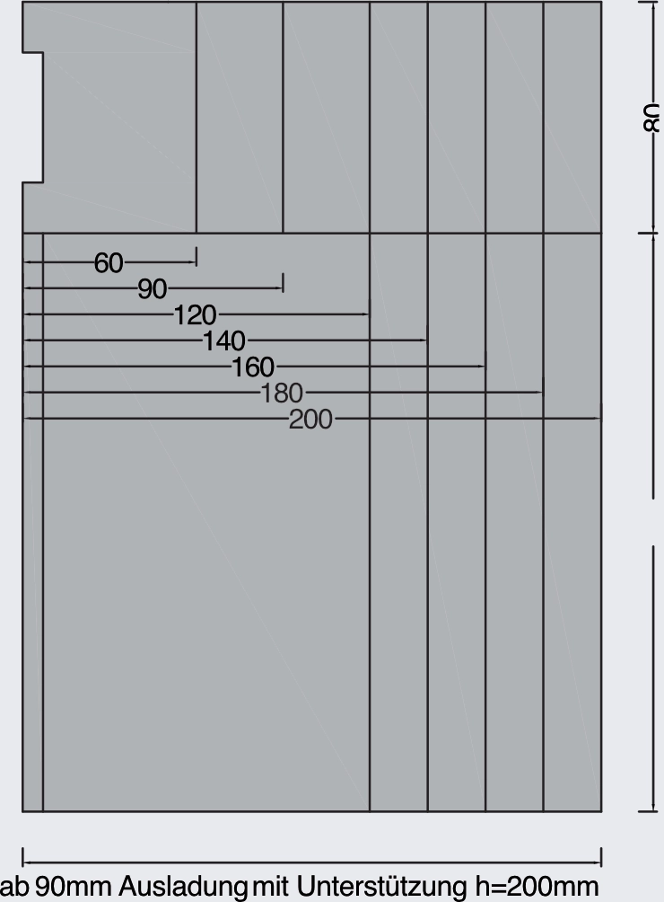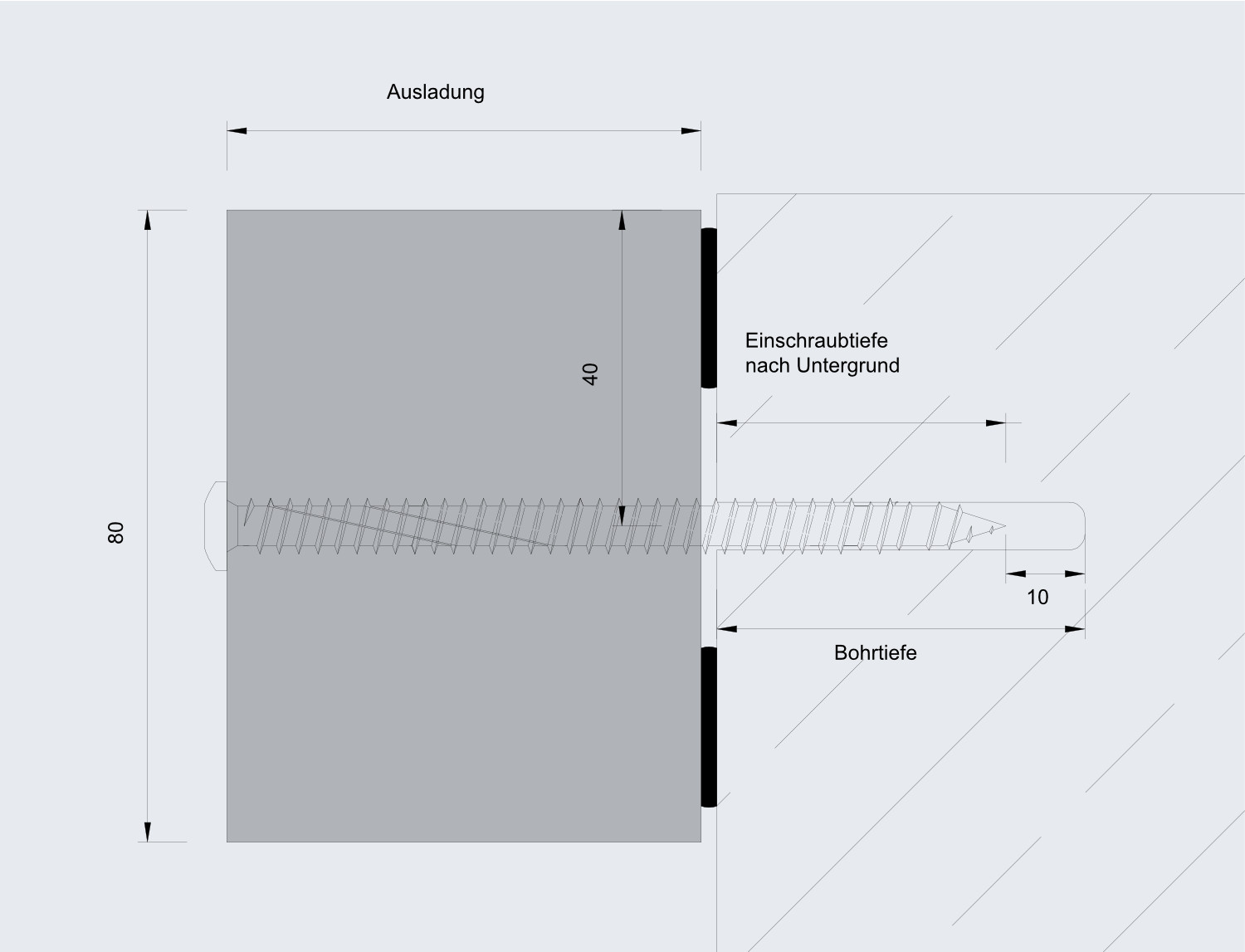 È necessario utilizzare una staffa (versione 3) se la sporgenza del profilo conforme al clima è > 100 mm. Le singole forze di contatto nei punti di fissaggio possono essere determinate utilizzando il calcolatore di fissaggio COMPACFOAM. Ci contatti per ricevere il suo dimensionamento personalizzato.