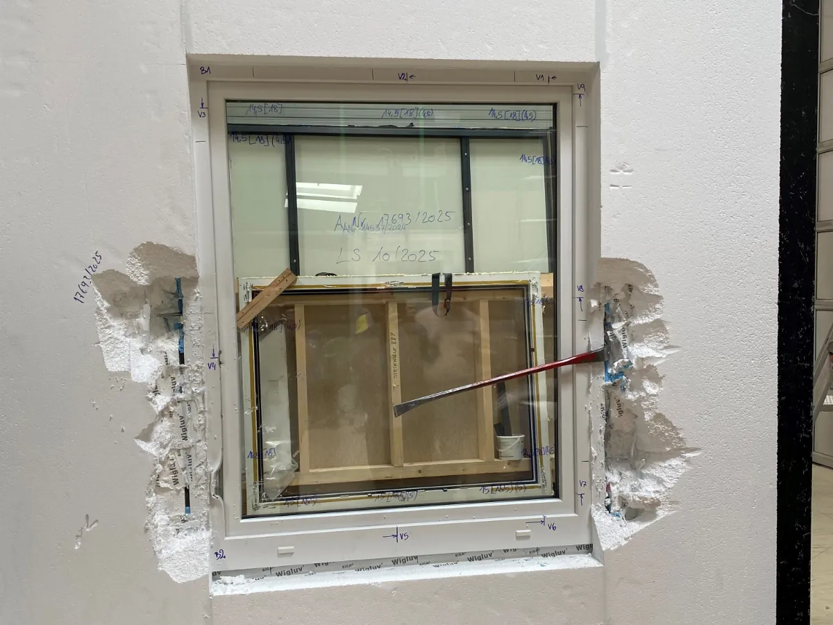 In un test a due fasi, le aree critiche vengono testate per la sicurezza utilizzando strumenti di scasso standardizzati. Il primo test viene effettuato tra il telaio della finestra e il sistema Klima Konform. Inoltre, viene effettuato un attacco sul collegamento del sistema di installazione pre-muro al corpo della parete.