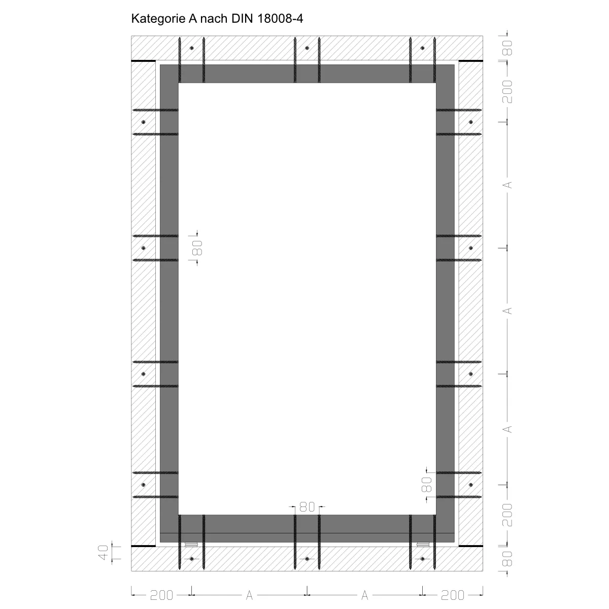 Per gli elementi con proprietà di protezione anticaduta (ETB), a seconda della rispettiva categoria (A / C2 / C3), il profilo della finestra deve essere fissato anche con una seconda vite (doppia vite). La distanza tra le viti è di 80 mm, la distanza dal bordo è di almeno 40 mm dall’esterno del profilo di montaggio pre-parete e la profondità di avvitamento nel profilo di montaggio pre-parete deve essere di 80 mm.