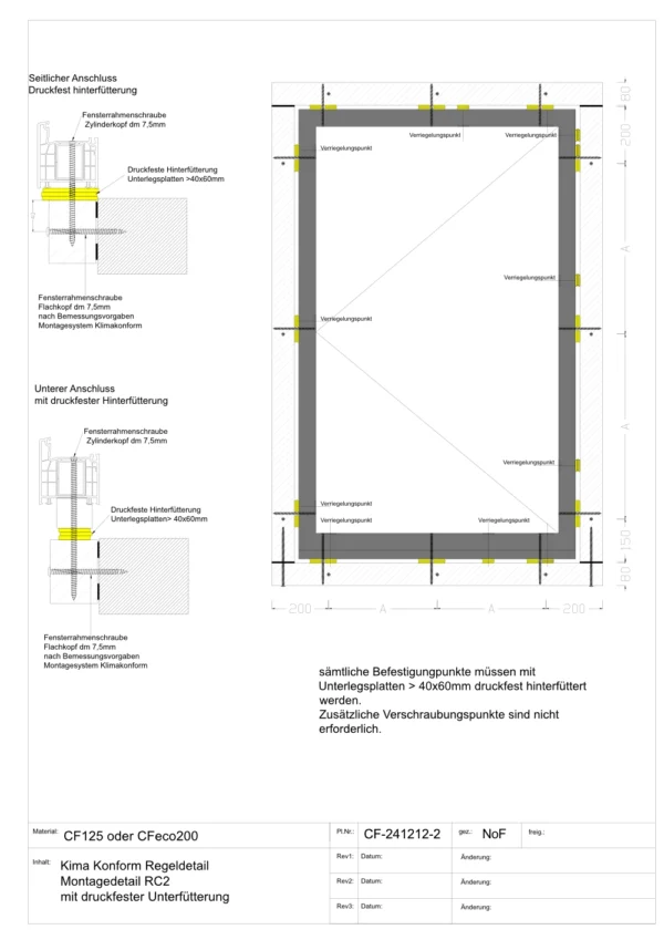Ogni costruzione di finestra è supportata da blocchi di supporto puntuali nel telaio. L’intero carico morto della finestra è concentrato sotto questi punti di supporto e deve essere trasferito in modo sicuro nella parete.