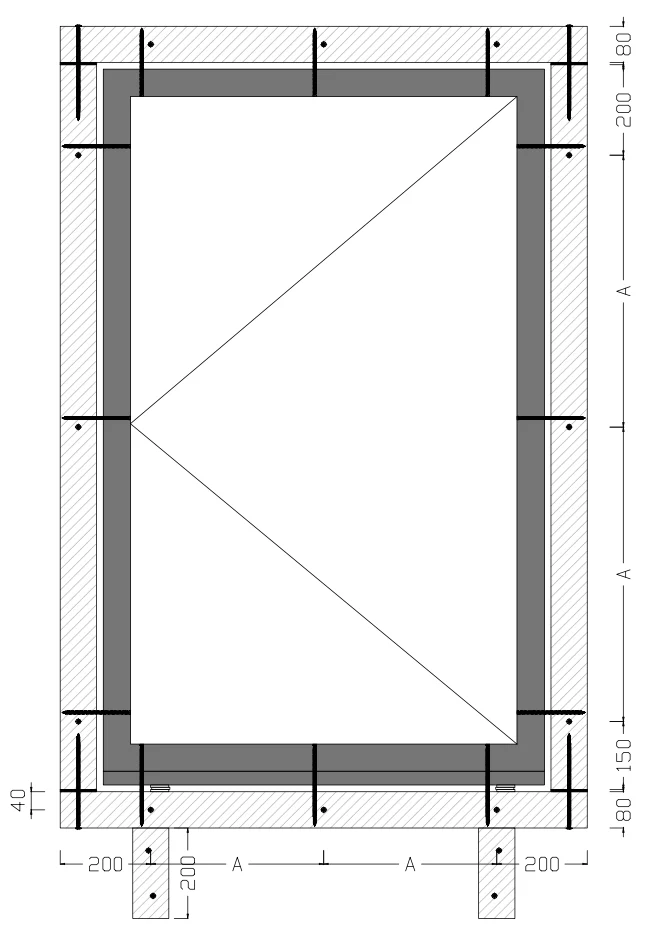 A…. distanza massima di avvitamento in alto e sui lati <700mm o in base ai requisiti statici