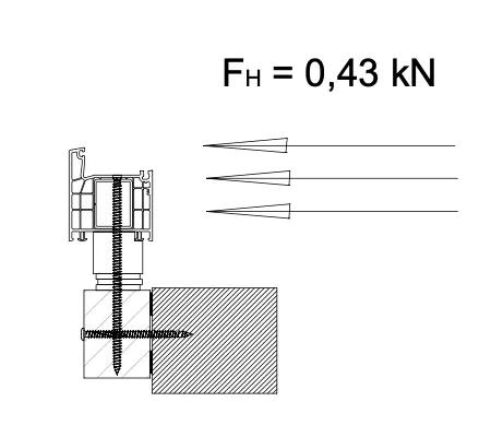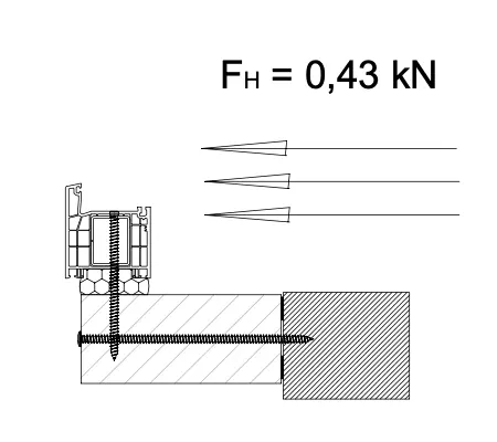I carichi orizzontali nelle costruzioni di finestre si generano a causa del vento o dell’impatto sui vetri. Da lì, vengono trasferiti alla struttura del telaio. Questo carico viene trasferito al telaio di montaggio in un punto attraverso la connessione a vite laterale.