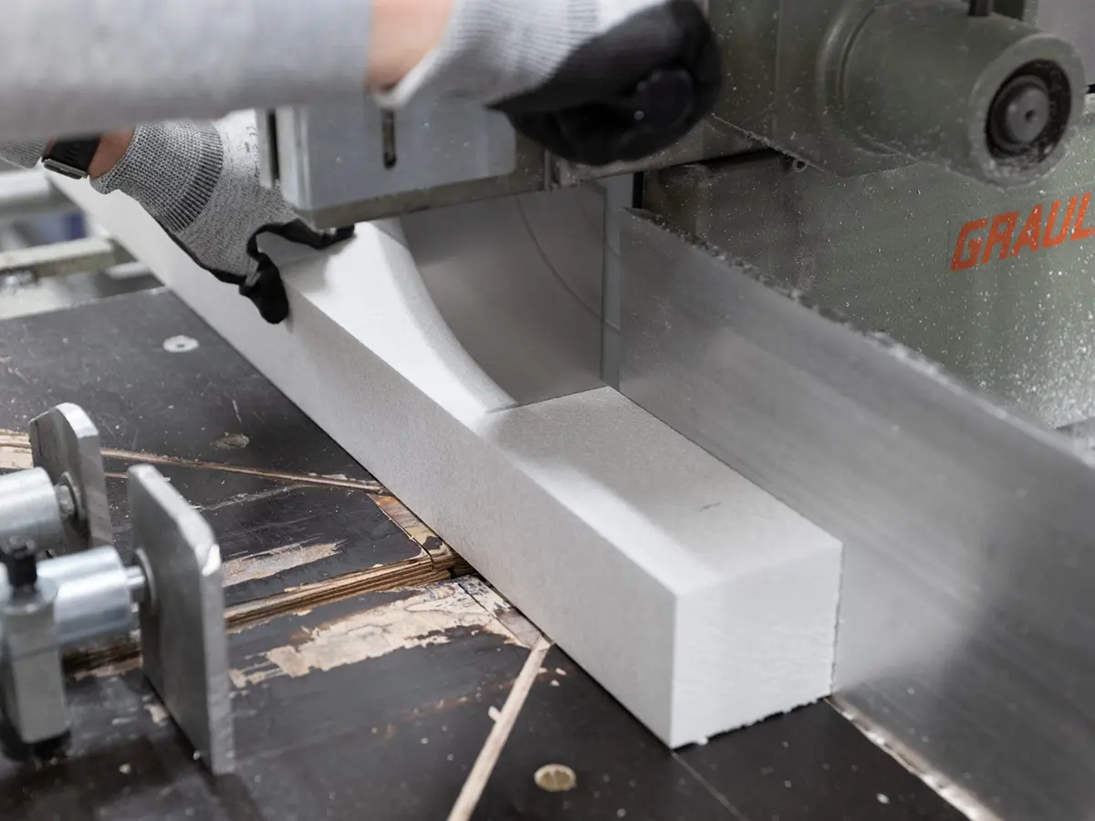 COMPACFOAM può essere facilmente tagliato a misura utilizzando le seghe disponibili in commercio, come le seghe circolari, le seghe a pressione o le seghe circolari manuali. È importante utilizzare lame con un’ampia spaziatura dei denti e uno spazio libero per i trucioli.