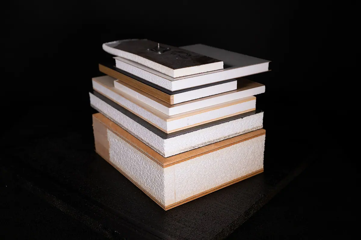 Disponibile come pannello sandwich con vari rivestimenti. Questi includono carta kraft, MDF, laminato e molti altri. compatto è disponibile anche come nucleo sandwich con spessore personalizzato e levigato con tolleranze di 0,2 mm.
