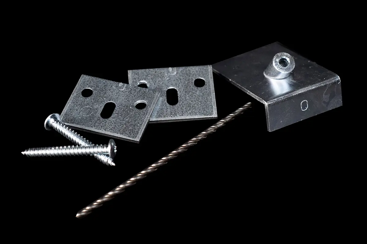 Tutte le viti con filettatura per legno sono adatte all’installazione. Se lo spazio è sufficiente, si consiglia una vite per telaio di finestra con un diametro di 7,5 mm. Le viti per legno con un diametro di 4 mm sono ideali per i componenti più piccoli. Non è necessario preforare e le viti possono essere utilizzate anche vicino al bordo senza problemi.